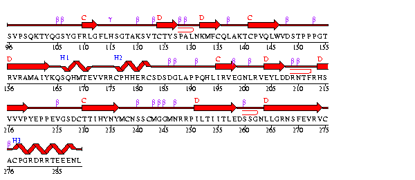 Chain A ( 196 residues ) PROMOTIF summary : 2 sheets, 11 strands, 3 helices, 23 beta turns, 2 gamma turns, 4 beta bulges, 3 beta hairpins.