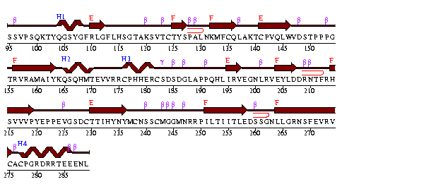 2 sheets, 11 strands, 4 helices, 24 beta turns, 1 gamma turn, 4