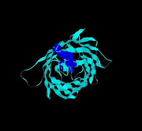 GFP經過S65, H66, And G67 Are Replaced With Iic 66, Y145F這兩個residue的mutation之後,會發出藍色的螢光,而這兩個residue在blue variant GFP中的位置如上圖