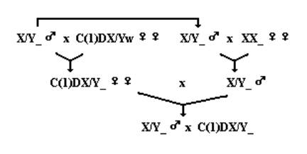 我們取~5269 FM7d,w1 oc1 ptg1 / C(1)DX, y1 f1 初步與選取的十個品系進行雜交實驗:分別取各品系單隻雄果蠅與數隻~5269品系雌果蠅交配,並對其後代的雌雄比例進行計量。由於C(1)DX / 0 的雌性果蠅因為缺乏性染色體上的部分核醣體核醣核酸(rRNA)基因(bb)而無法生存,故此雜交實驗可以初步的偵測果蠅品系的Y染色體基因型。