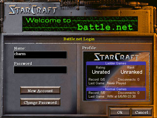 看到下面的畫面,就代表成功的連上FreeBattleNet 了,如果你是第一次連上某個FreeBattleNet,你會被要求建立一個新的帳號,並設定密碼,因為這邊是會記錄你的戰績的。