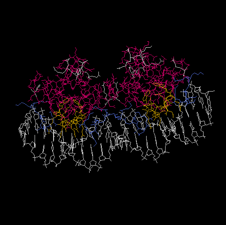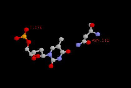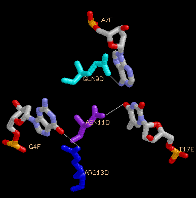 Gln9, Asn11, Arg13 and their corresponding DNA bases