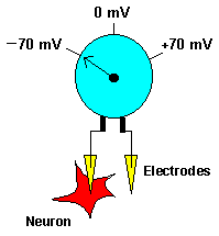 當一個神經不傳送訊息時我們稱之為休息狀態。當神經細胞在休息狀態時期,細胞內的電壓相對於細胞外的是負值