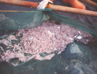 分離魚苗:整理人員在用水桶接到魚獲後,再添入一些水,挑取出雜物時並予以攪拌,使得砂石沈澱在最下層與魚苗分開,再將水到入另外一個水桶中,如此重複數次即可將魚苗與砂石完全分離。