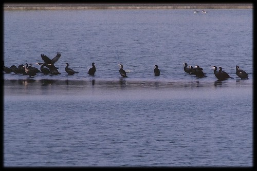 型態特徵:夏羽:全身大致為黑色,嘴基部內側黃色,裸露皮膚白色。眼綠色,頰後方 及後頭有白色細羽毛。背、覆羽銅褐色,羽緣黑色。冬羽:大致似夏羽, 但頰、後頭無白色的細羽毛,?無白斑。 生態習性:常小群出現在沼澤、河口、湖泊等地帶。