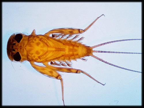 型態特徵:是扁蜉蝣科(Heptageniidae)的稚蟲,其中包含至少兩個以