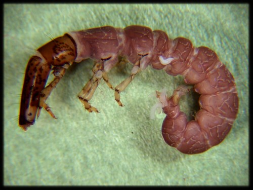 型態特徵:是長鬚石蠶科(Stenopsychidae)的一種,屬於大型種類,頭部細長呈桶狀, 棕褐色,並有許多黑褐小點構成複雜花紋,上唇扁圓形,前胸骨化完全,尾肢長且尾鉤 堅硬,腹末具有明顯肛門鰓。 生態習性:吐絲造網捕食有機碎屑或藻類,並以小石塊造固定巢。 分佈地點:分佈於台灣各地溪流上游河段的流水域中。中港溪只見於上游的南河與東河 支流。客雅溪與南崁溪則未有紀錄。