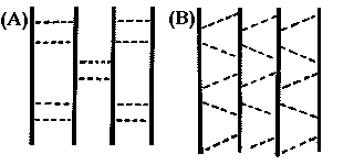 The dots in the above figure represent the hydrogen bonds between backbones. Could you identify the parallel b-sheets or antiparallel b-sheets from these hydrogen patterns?
